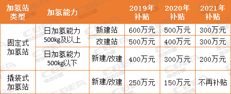 加氫站運營補貼