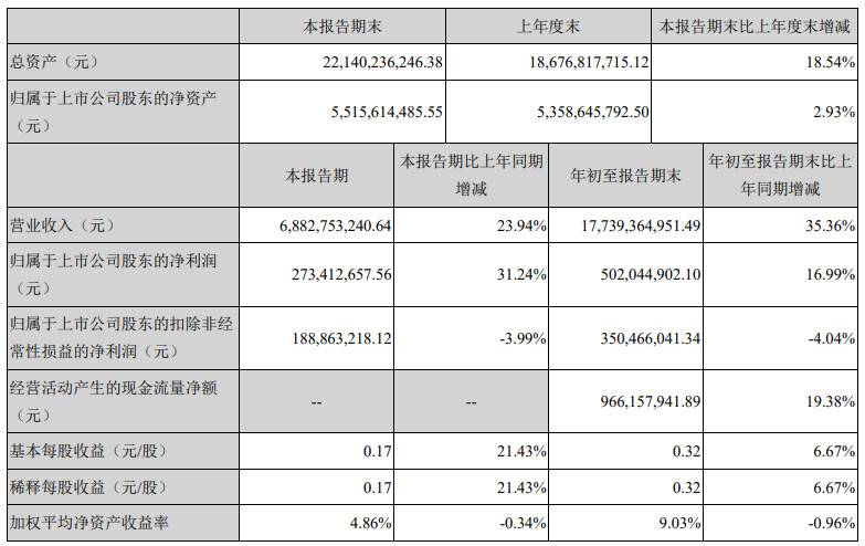 欣旺達(dá)2019年第三季度財(cái)報(bào)顯示,今年7-9月,欣旺達(dá)實(shí)現(xiàn)營(yíng)業(yè)收入68.83億元,比上年同期增加23.94%;凈利潤(rùn)2.73億元,同比增加31.24%。