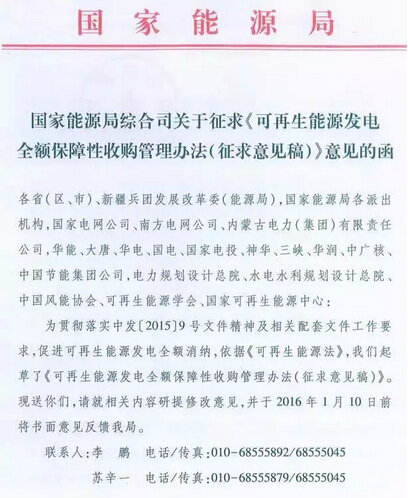 能源局就《可再生能源發電全額保障性收購管理辦法》征意見:可再生能源優先發電權將被落實