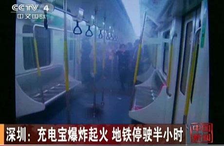 圖2:央視報道 深圳地鐵充電寶爆炸煙霧四起
