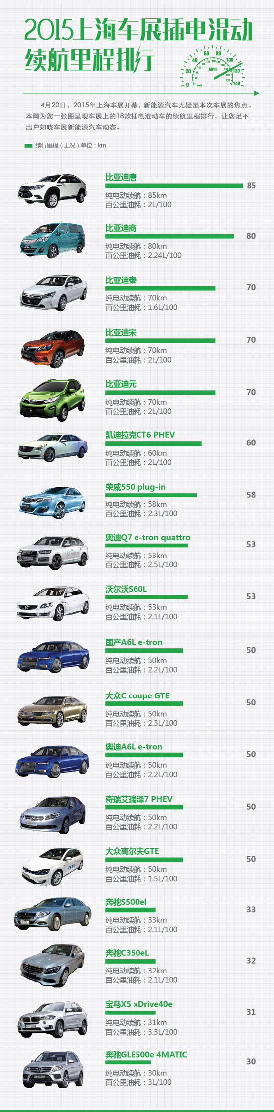 2015上海車展插電混動續(xù)航里程排行榜