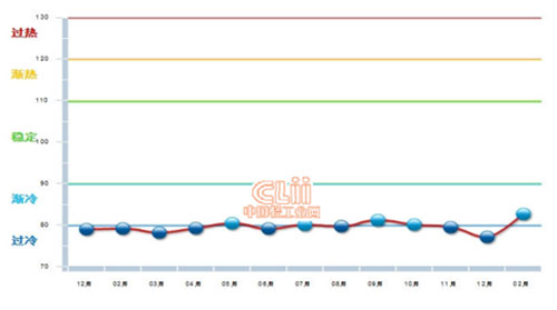 根據(jù)此前中國輕工業(yè)網(wǎng)發(fā)布的“中輕電池景氣指數(shù)”顯示,2014年12月前,我國電池行業(yè)始終在“過冷”與“漸冷”區(qū)間內(nèi)徘徊;進(jìn)入2015年,電池行業(yè)發(fā)展出現(xiàn)向好態(tài)勢,“中輕電池景氣指數(shù)”從2014年12月的77.12上漲到2015年2月的82.67。
