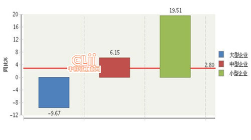 從企業(yè)規(guī)模來看,中型企業(yè)利潤增長速度最快,同比增長75.12%。