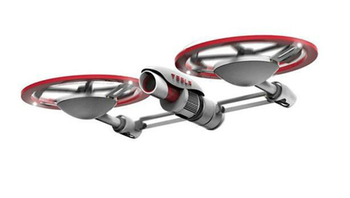 2015年9月,特斯拉Tesla作為電動汽車領域的佼佼者,公布了一款專門針對航拍應用的無人機原型。特斯拉公司在充電電池方面顯然更為老道,據悉,該款無人機搭載了一塊10000mAh電池,單次充電可持續飛行60分鐘,充電時間為20分鐘左右。